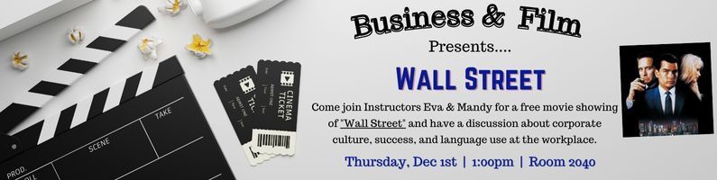 Come to watch this free screening of Wall Street on Thursday, December 1st at 1:00pm in room 2040