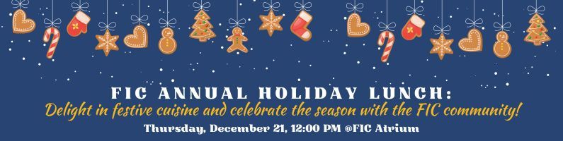 We’re thrilled to invite you to the Annual FIC Holiday Lunch, one of the many exciting events we have in store. Join the FIC Advising team on Thursday, December 21st, at 12 pm in the 1st-floor Atrium at FIC for a festive feast. Due to limited space, registration is a must, so don’t miss out—REGISTER NOW. The deadline to secure your spot is December 18th at 12 pm. Bring your friends and make this holiday lunch a memorable part of your seasonal celebrations!