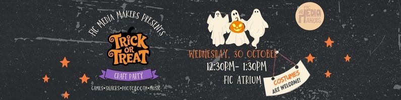 This events is full of fun and activities like crafts, snacks and photobooth. Join us to DIY your candy basket! Date: Wednesday, October 30th, 12:30-1:30pm in the FIC Atrium. Costumes are welcome!!!