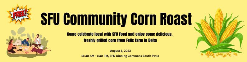 Don’t miss out on this mouthwatering experience! Drop by the SFU Dining Commons South Patio on Tuesday, August 8th, anytime between 11:30 am to 1:30 pm to get a free cob, hot off the grill. Remember, this delicious treat is only available while supplies last! (Note: it’s no an FIC hosting event, so grab a friend and have fun!)