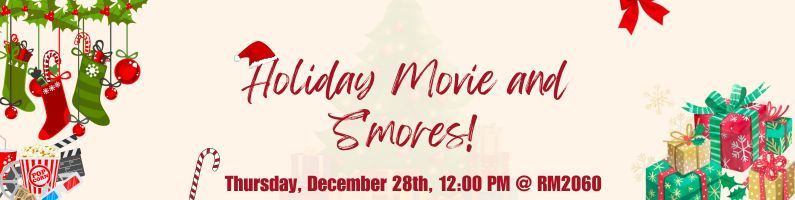 Step into a winter wonderland at our enchanting Holiday Movie and S’mores event! Join the FIC advisors on Thursday, December 28th, at 12:00 PM in Room 2060 for a delightful cinematic experience, complete with the warmth of crackling fires and the sweetness of s’mores. Gather with friends and savor the holiday spirit. Don’t miss this perfect blend of festive films and delicious treats—a cozy escape awaits you!