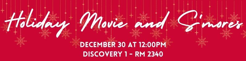 Come enjoy a wholesome holiday movie with a Canadian treat, Smores! Find us in Room 2340 for a cozy afternoon! Movie will start at 12:30pm!