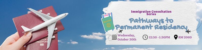This session will be about Pathways to Permanent Residency. If you are interested on attending, have questions about this or any other immigration topics or would like to just go listen, join the session on Wednesday, October 30th from 12:30 to 1:30pm, RM2060.