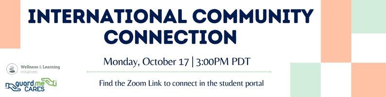 Meet new people, learn how to overcome challenges and connect with long-term support resources in this Community Connection session for the International students community hosted by guard.me and Wellness & Learning Initiative.