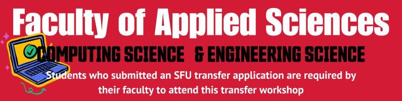 This workshop is open to students in the Applied Sciences program (Computing Science or Engineering Science pathway). Advisors from the SFU Faculty of Applied Sciences will be at FIC on Wednesday, October 16 to discuss how to successfully transfer to SFU and give insight to your first semester in your program.