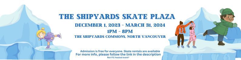 What: The City of North Vancouver’s free Shipyards Skate Plaza is opening on Friday, December 1, and skaters of all ages can glide on the approximately 12,000 sq ft surface daily from 1 to 8 pm. Fun can be had no matter the weather – the Shipyards Skate Plaza is covered by a retractable roof.