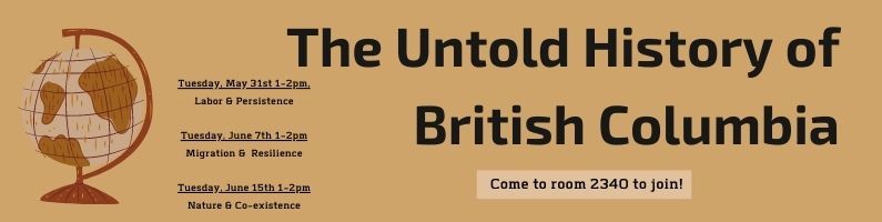 History Instructor Liam is hosting THREE films where you can join to learn more about the Canadian History especially in British Columbia.