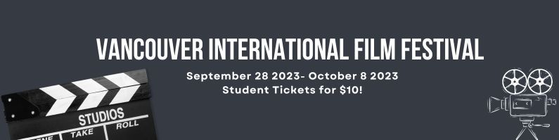 The Vancouver International Film Festival is here! Films are playing at different theatres throughout downtown Vancouver everyday from Sept 28 to Oct 8. Explore the Festival Schedule and purchase the student discounted tickets by visiting the VIFF Website.